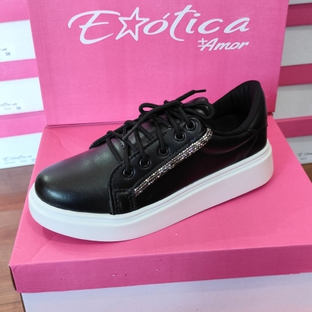 Tenis preto exotica brilho lateral