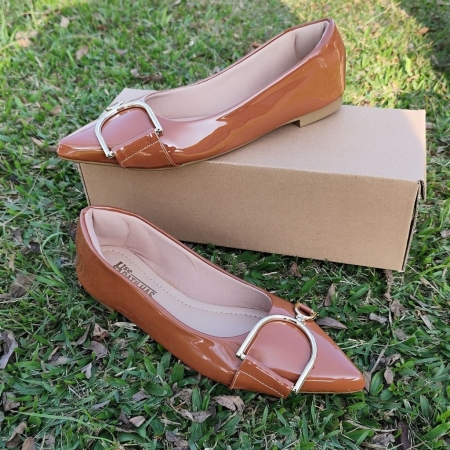 Sapatilha nude bico fino – bico em verniz