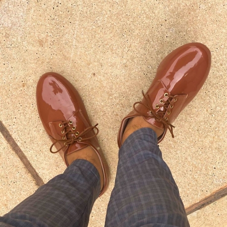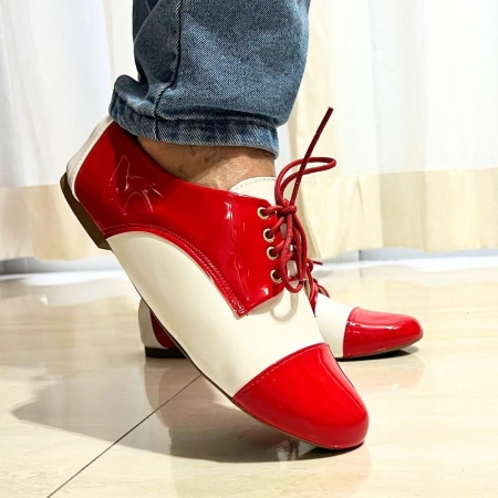 Sapato Oxford bico redondo vermelho e branco verniz