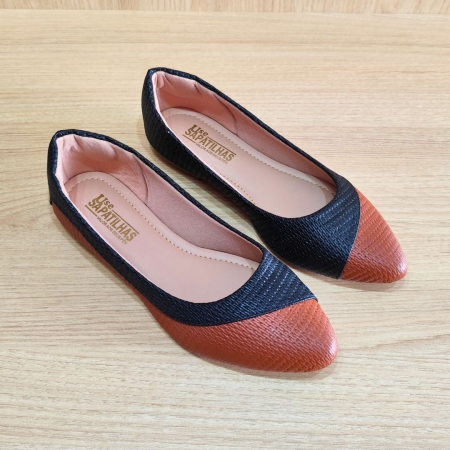 Sapatilha preta e caramelo bico fino