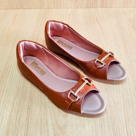 Sapatilha peep toe croco caramelo