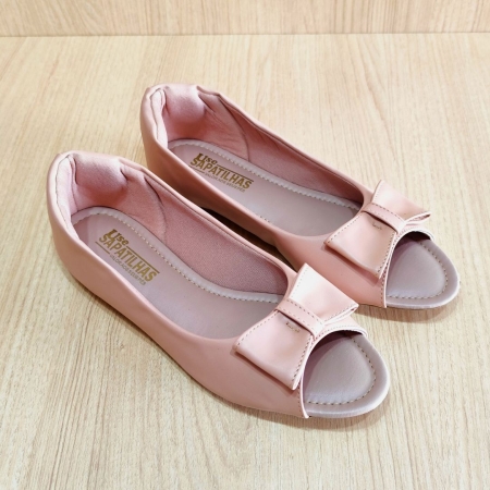 Sapatilha peep toe nude com laço borboleta
