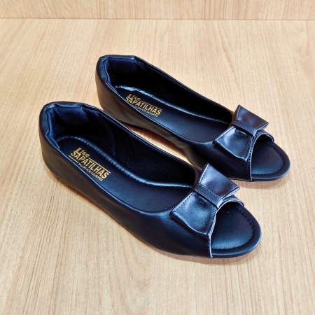 Sapatilha peep toe preta com laço borboleta