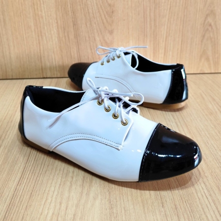 • Sapato Oxford bico redondo vermelho e branco verniz