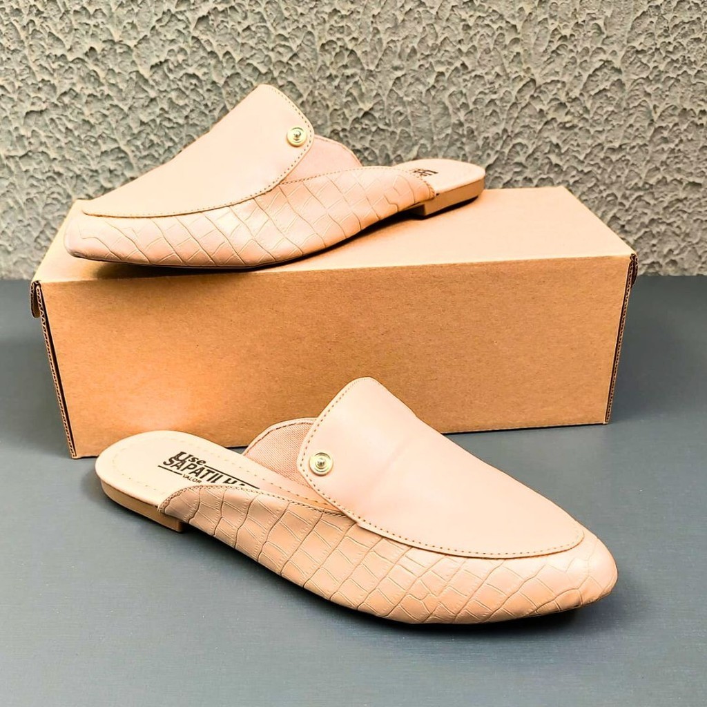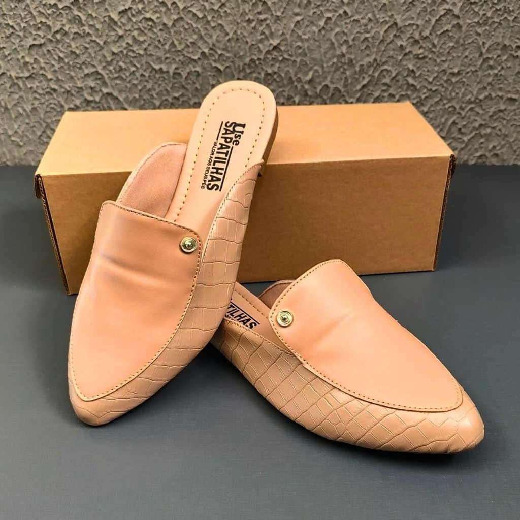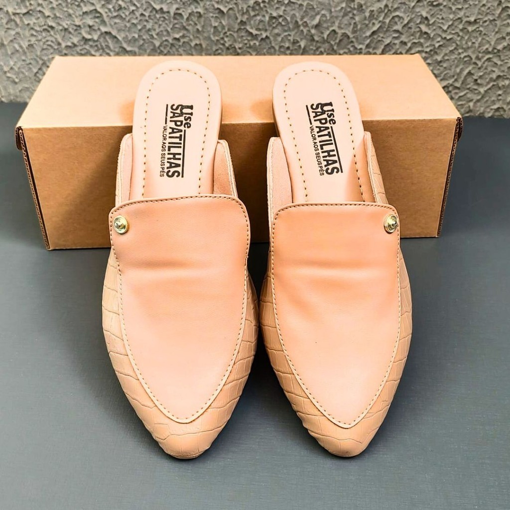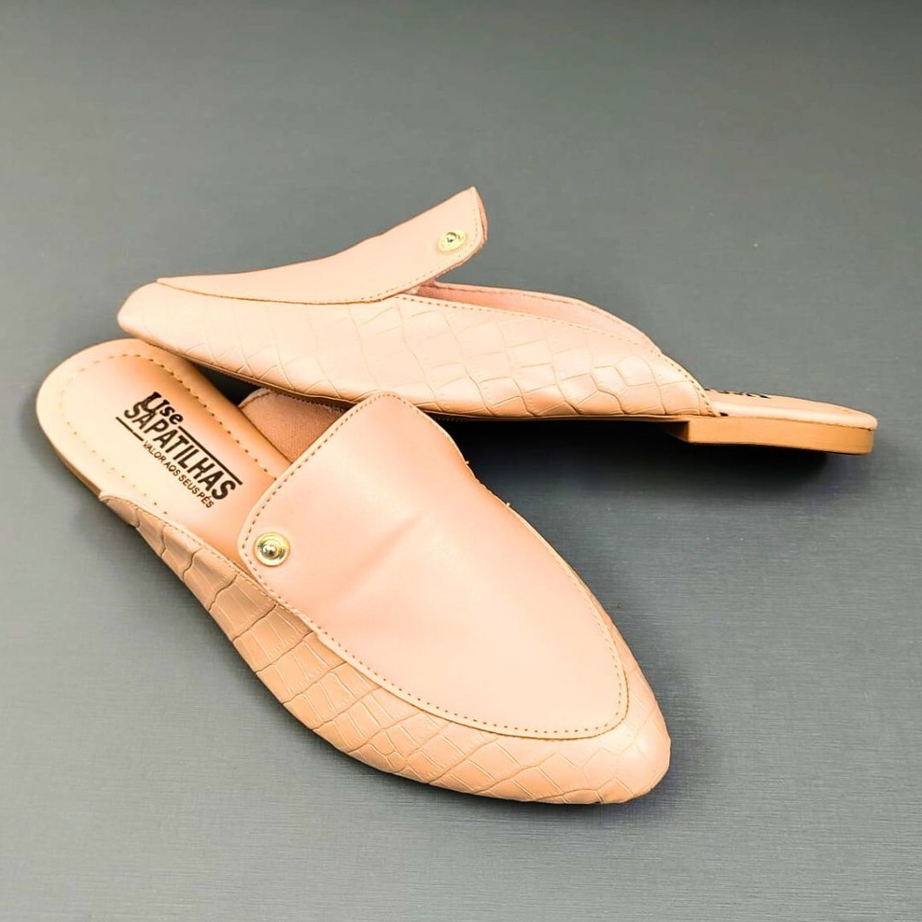 Mule de bico fino na sofisticada mescla de croco, com um elegante tom nude. Perfeito para o dia a dia, este calçado é a definição de praticidade e conforto.