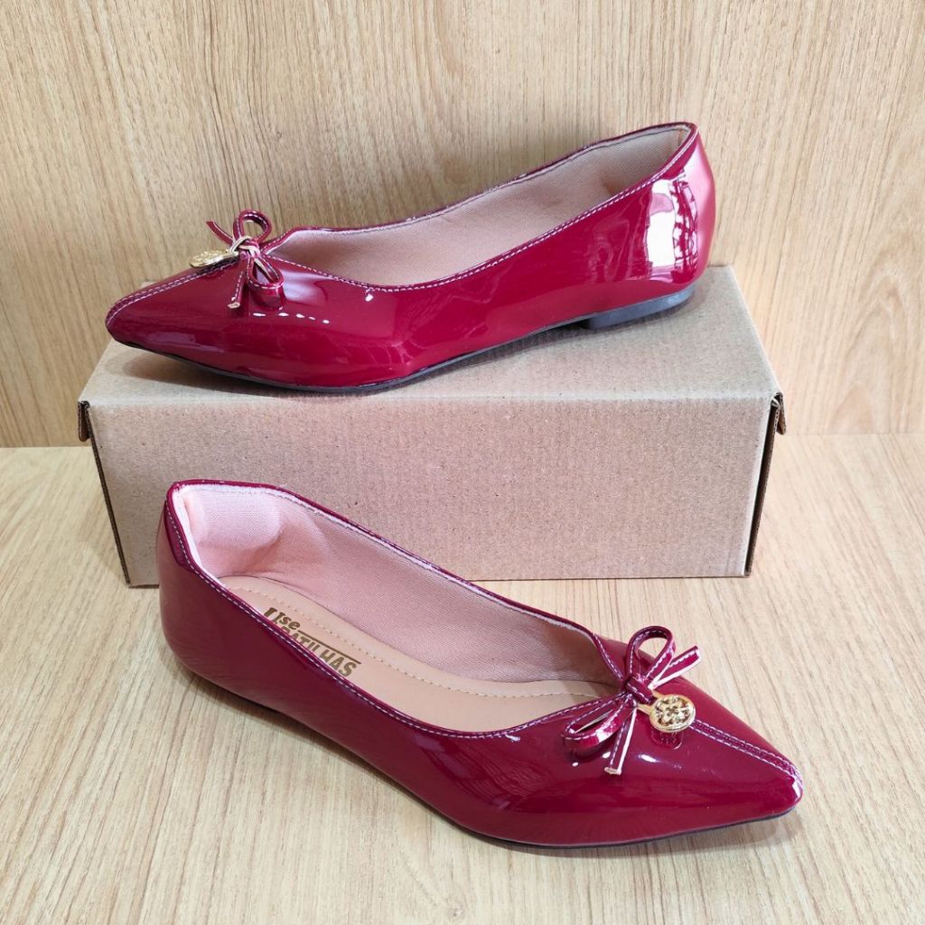 Elegante e moderna, esta sapatilha de bico fino na vibrante cor bordô é um verdadeiro luxo.