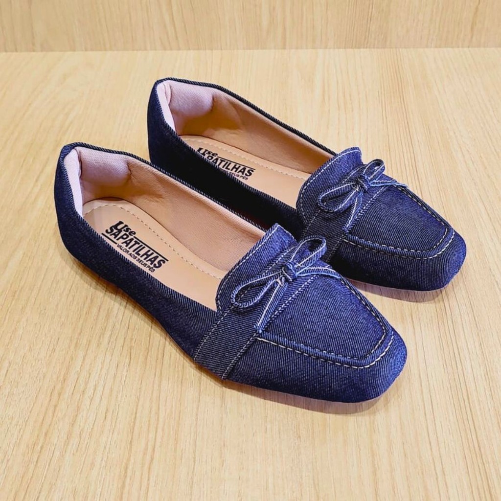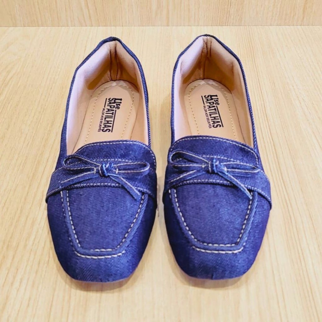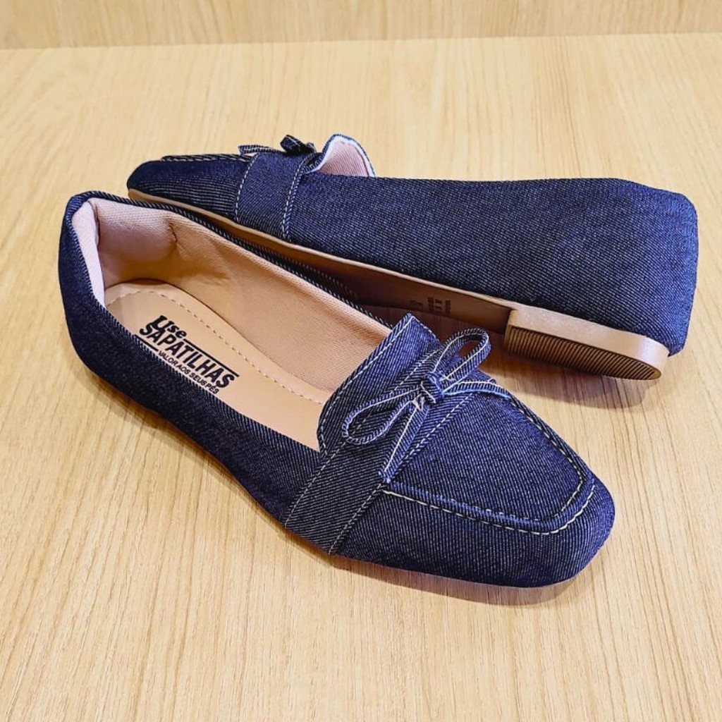 A sapatilha jeans de bico quadrado é uma peça singular e atemporal, perfeita para todas as estações e combinações de looks.