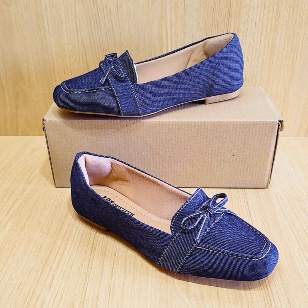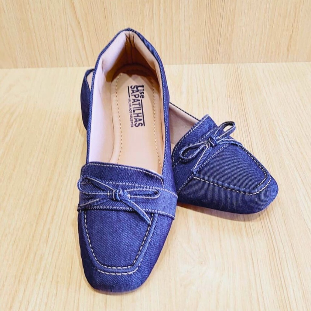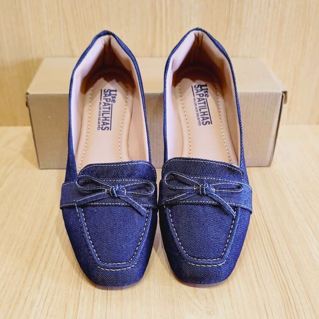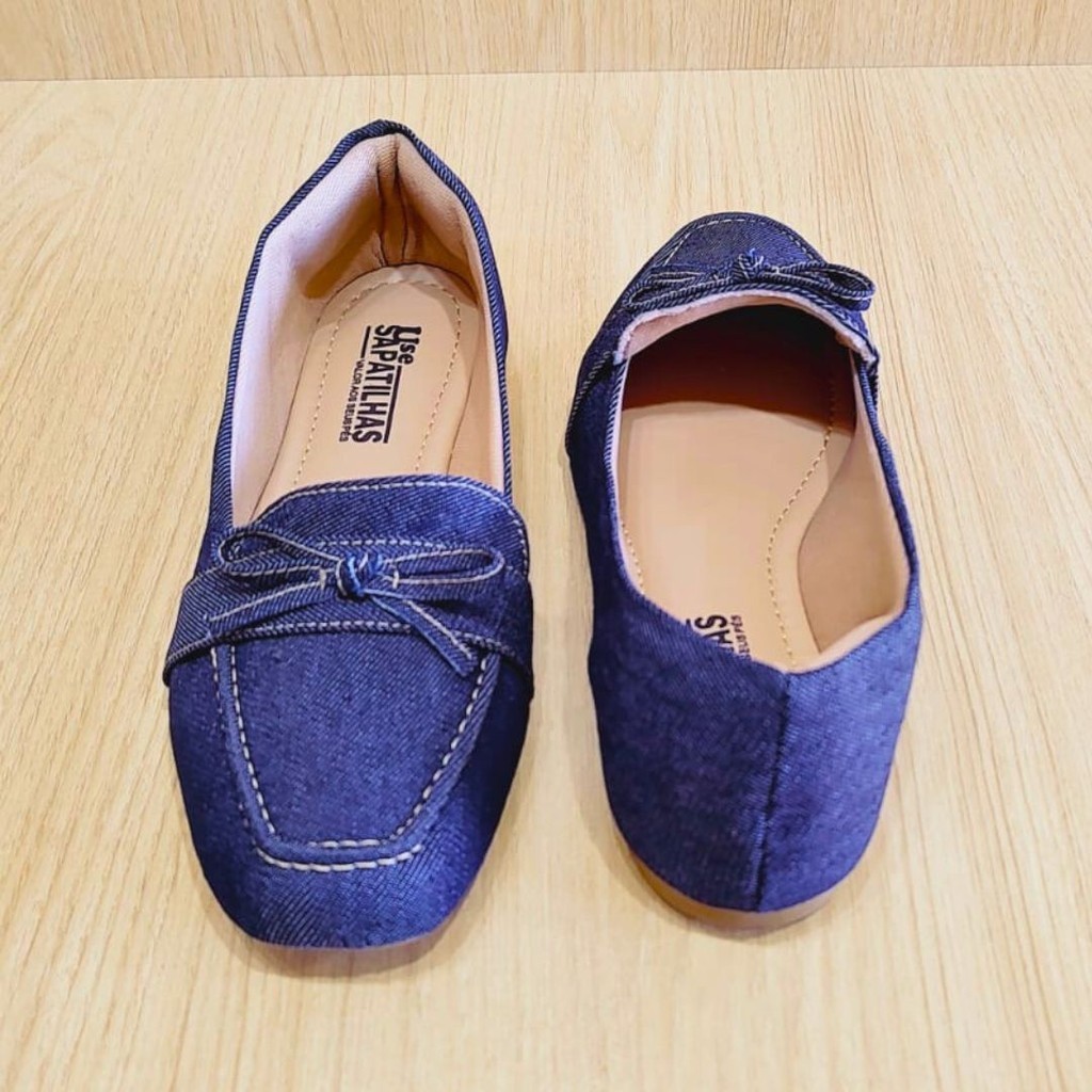 A sapatilha jeans de bico quadrado é uma peça singular e atemporal, perfeita para todas as estações e combinações de looks.