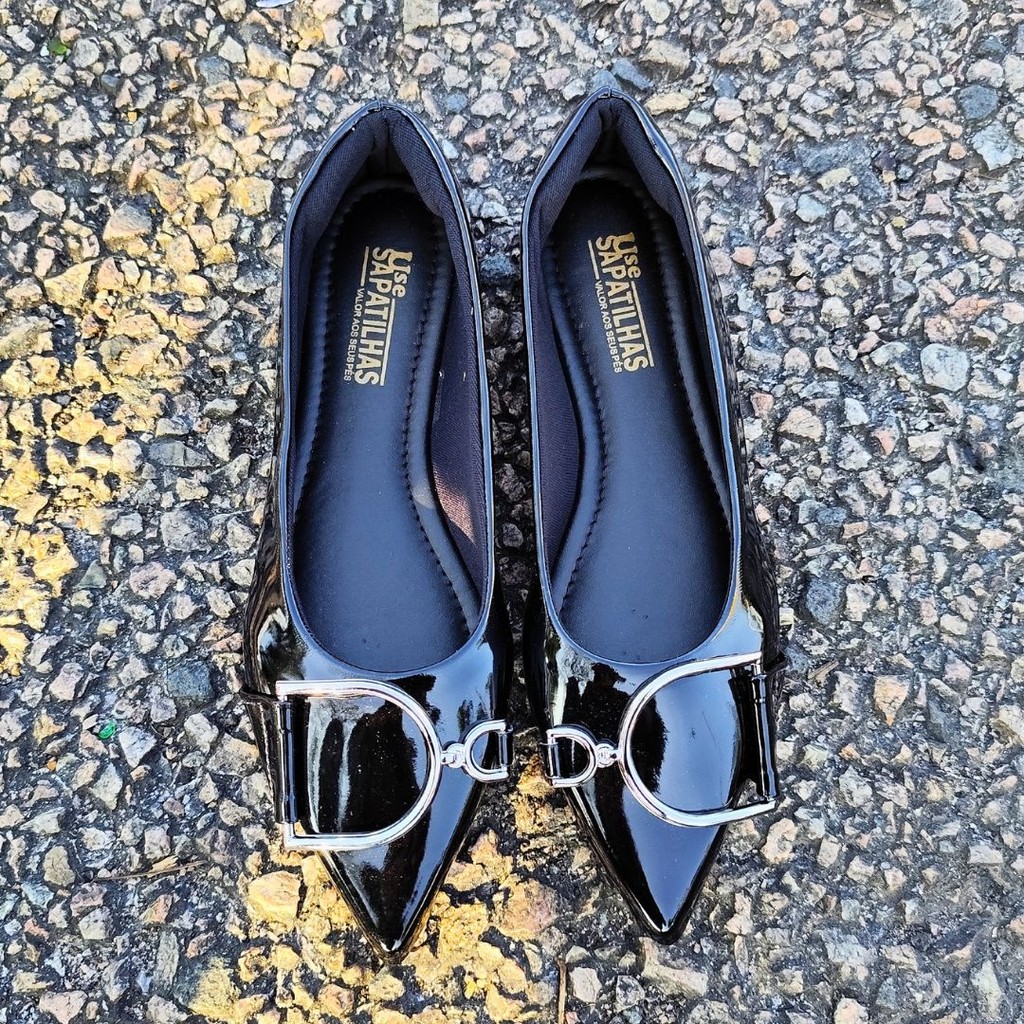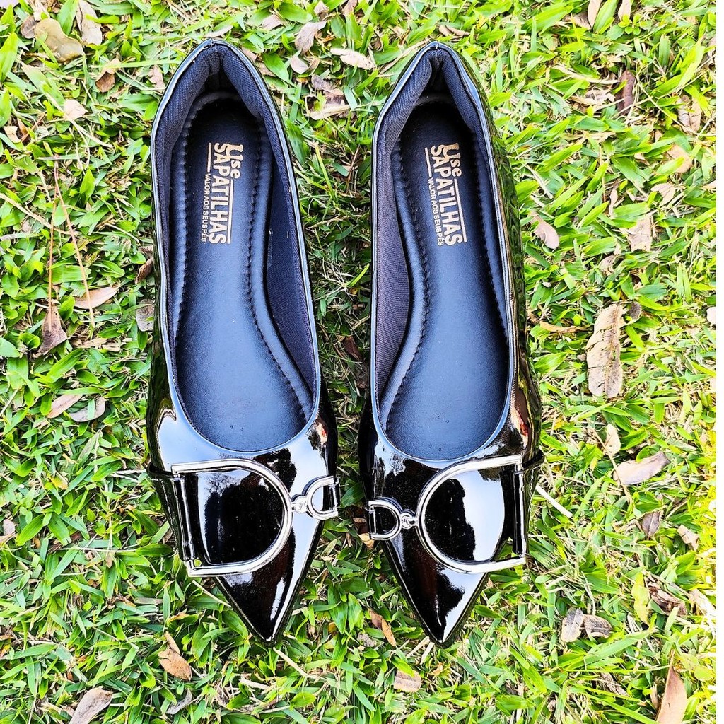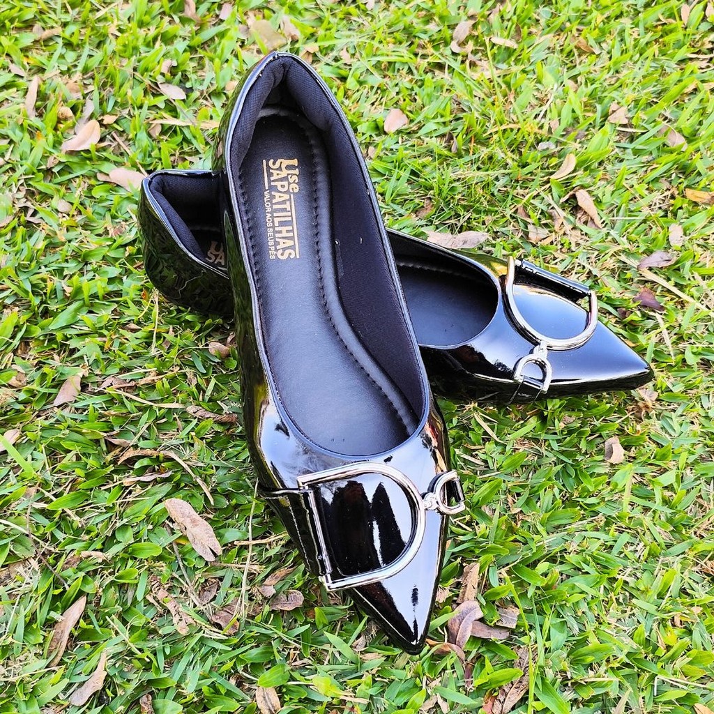 A elegância do clássico preto com um toque sofisticado: esta sapatilha bico fino alongado é perfeita para quem busca estilo e conforto.