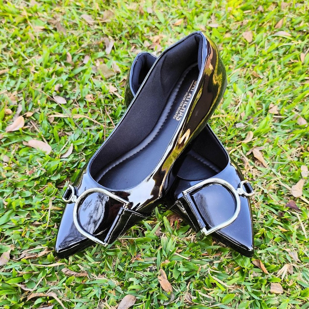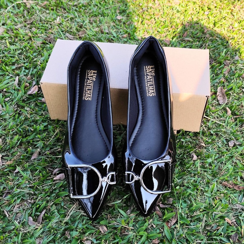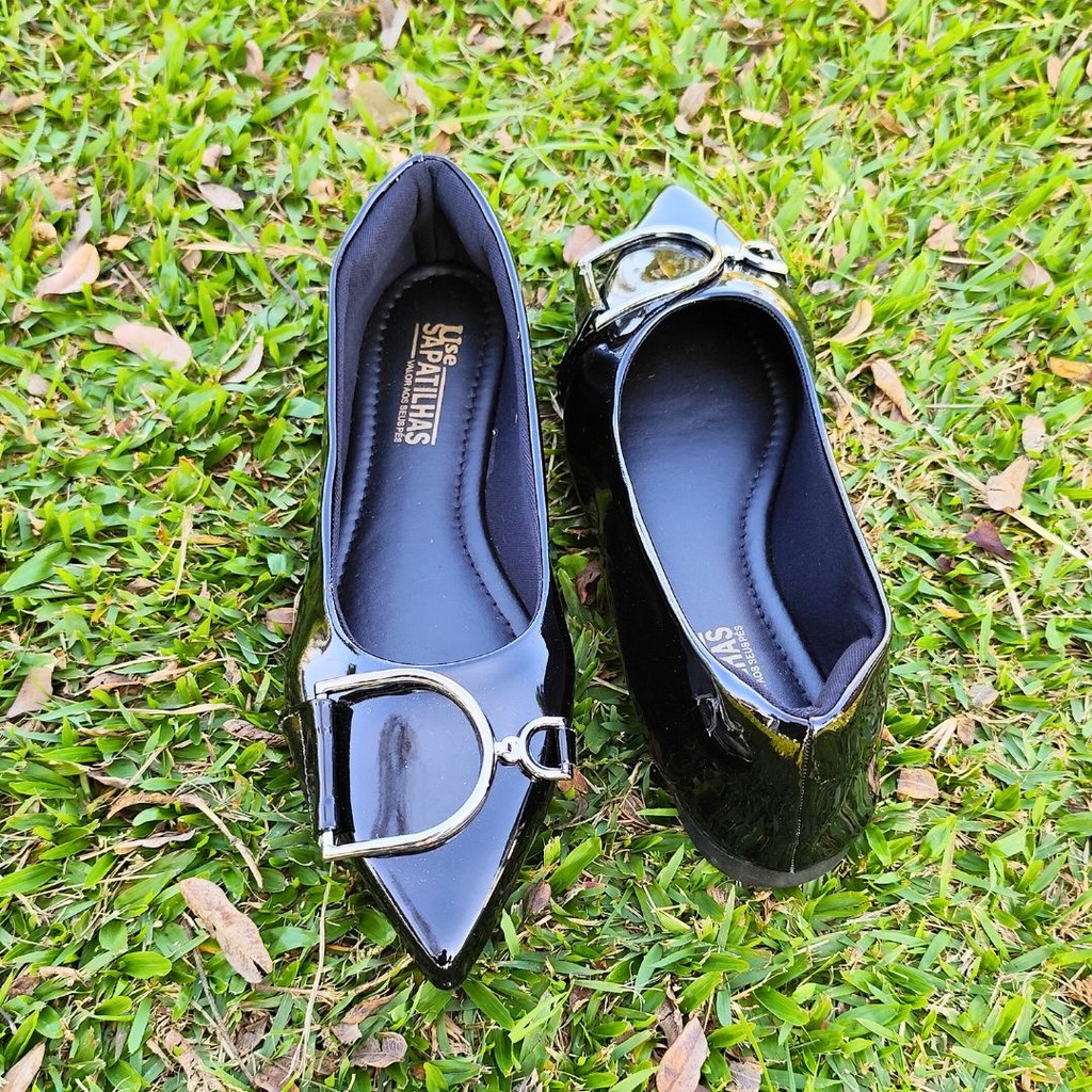 A elegância do clássico preto com um toque sofisticado: esta sapatilha bico fino alongado é perfeita para quem busca estilo e conforto.