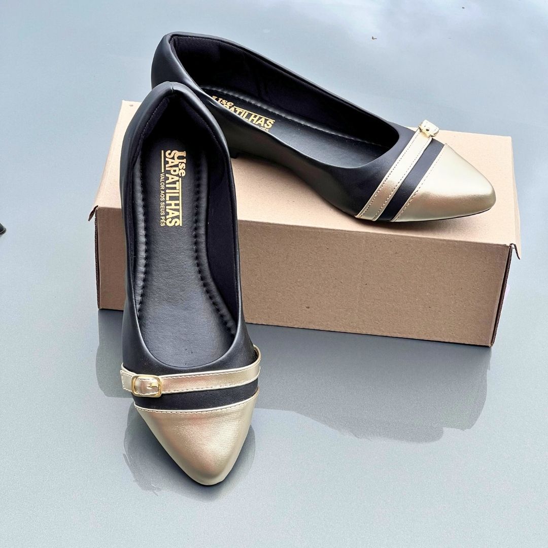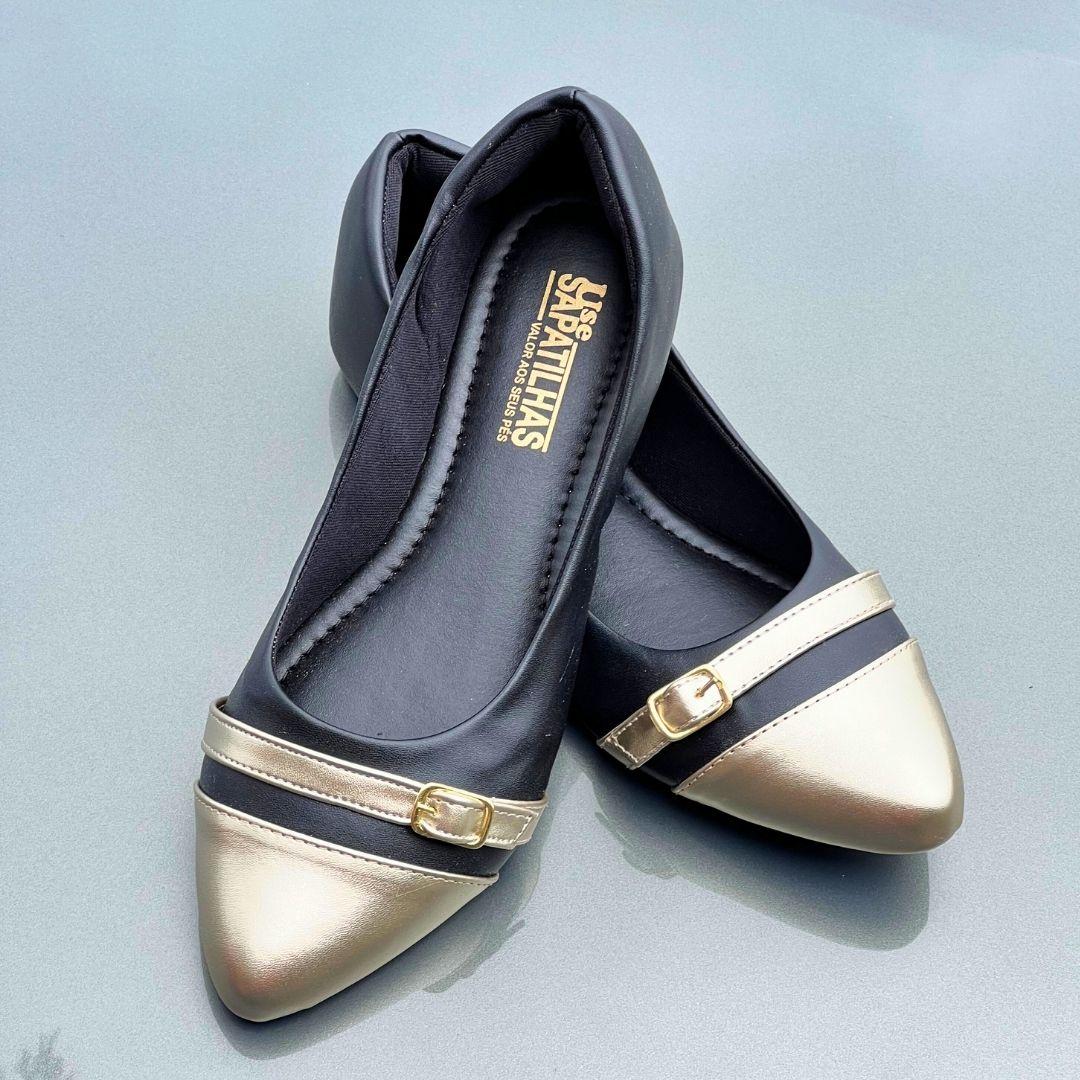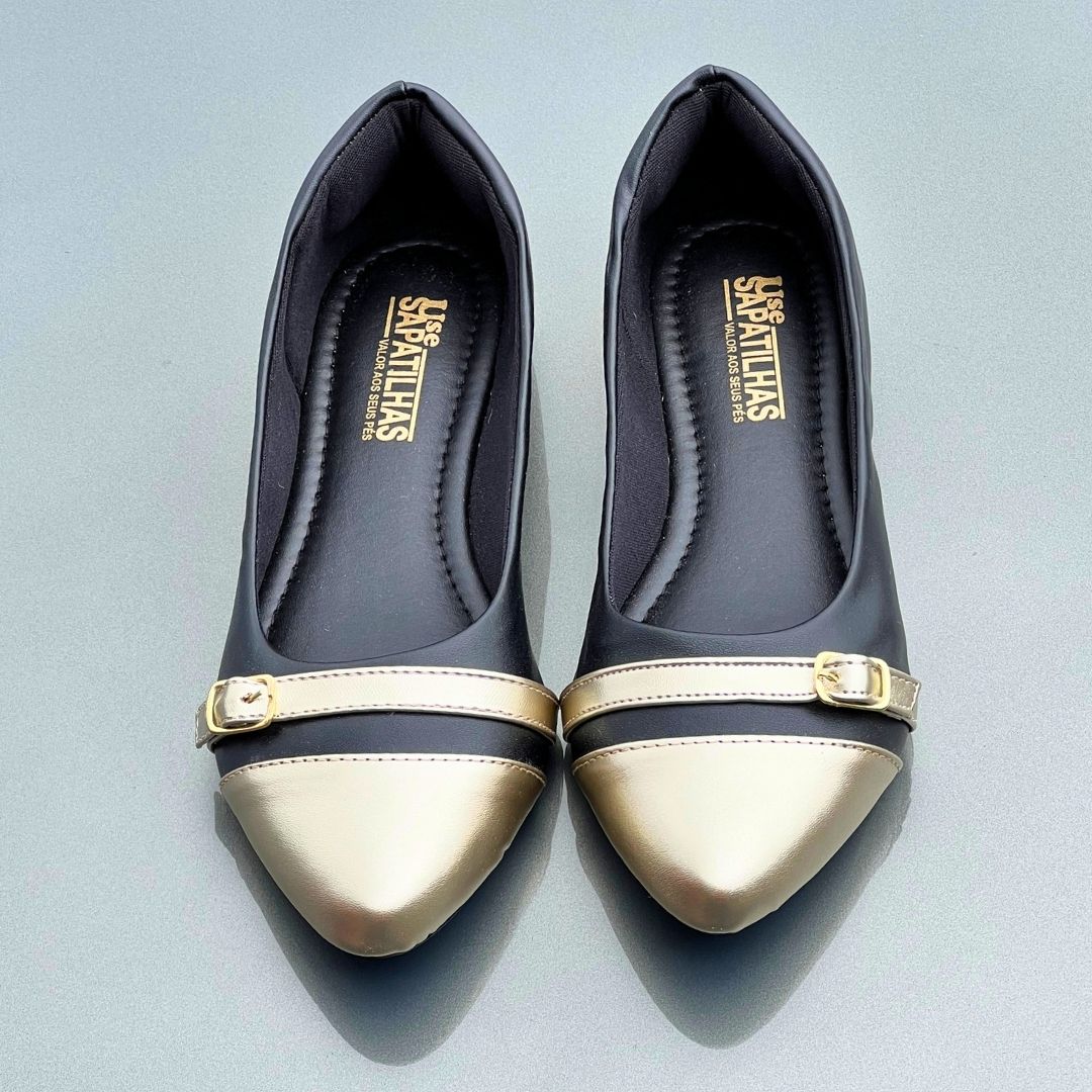Sapatilha Preta com Bico Dourado