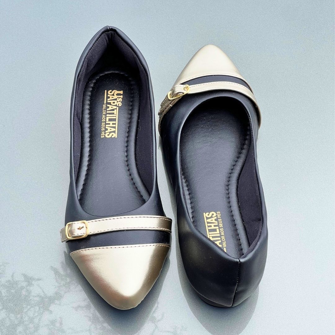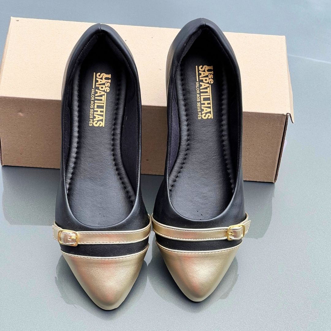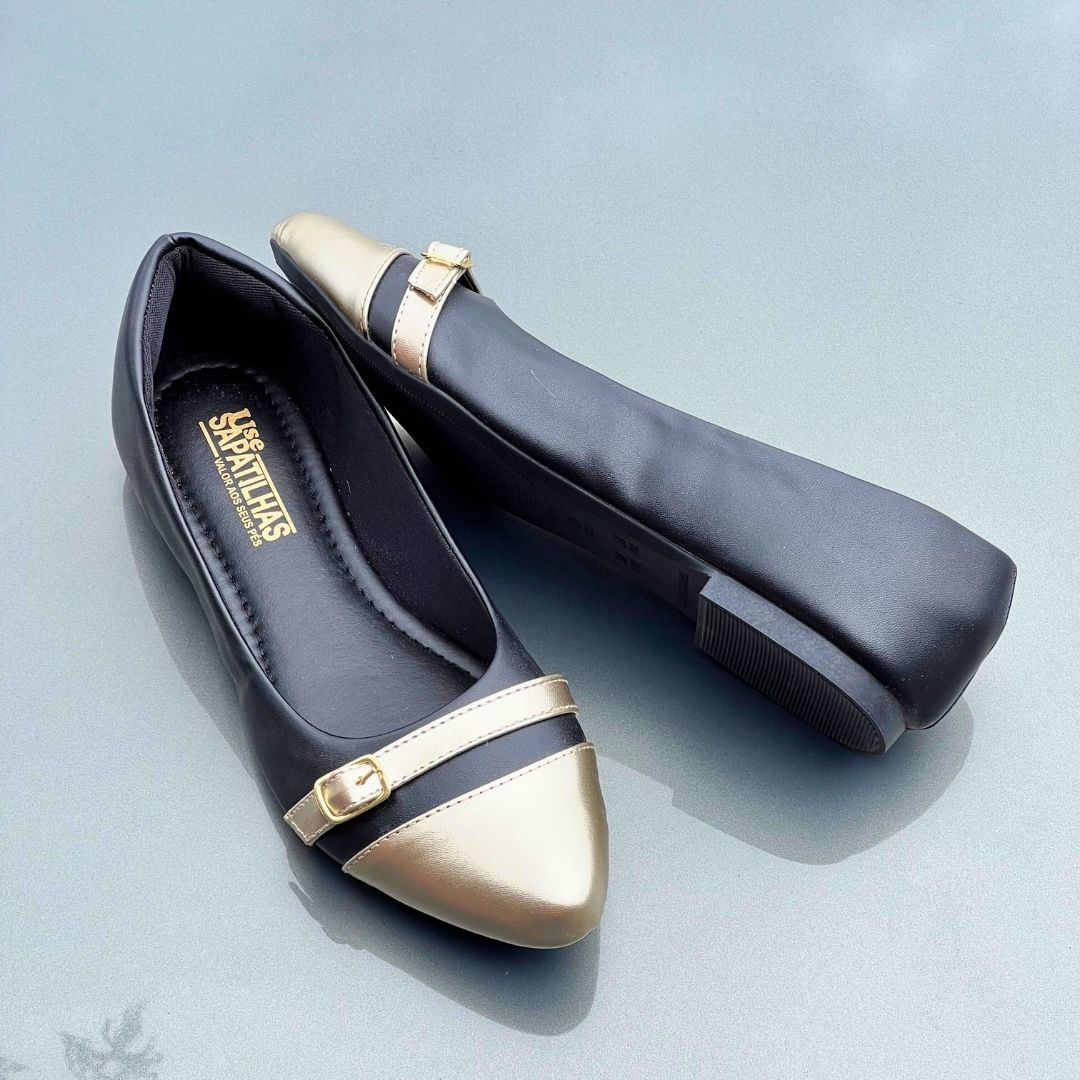 Sapatilha Preta com Bico Dourado