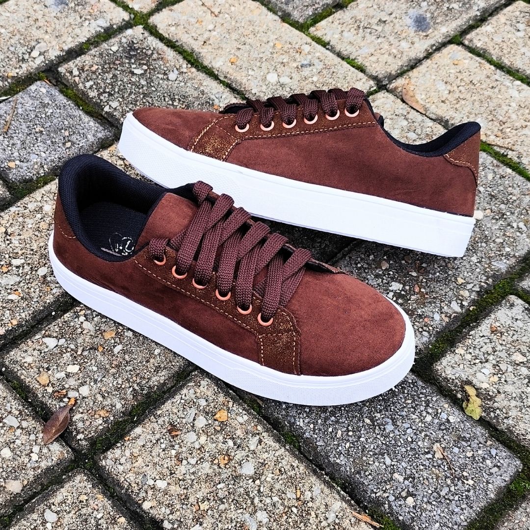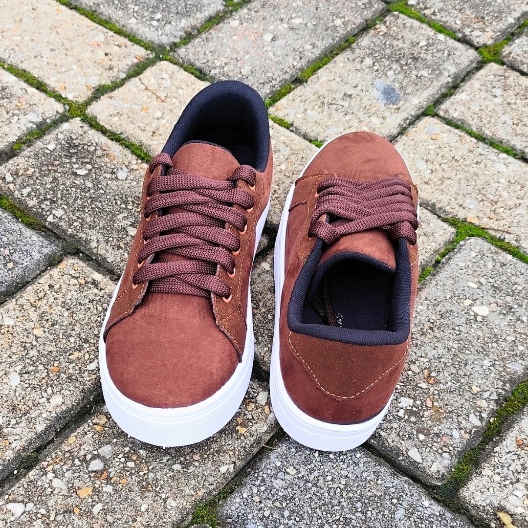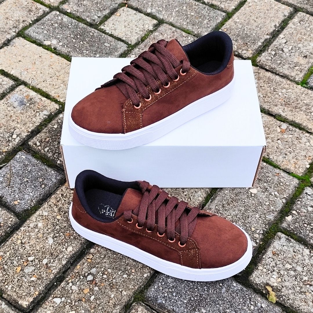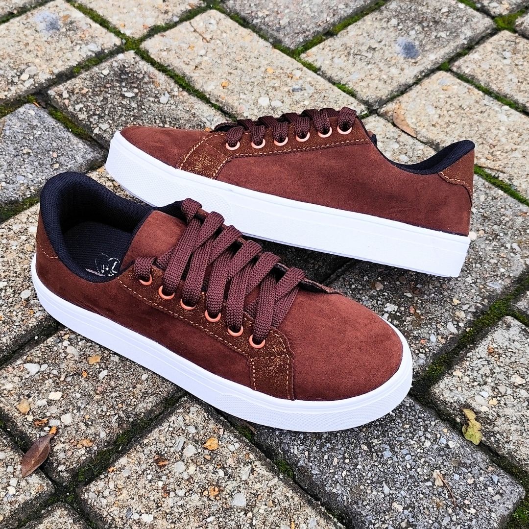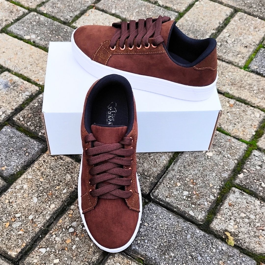 Elegante e moderno, este tênis feminino na cor marrom é confeccionado em material camurça, garantindo um visual sofisticado e cheio de personalidade.