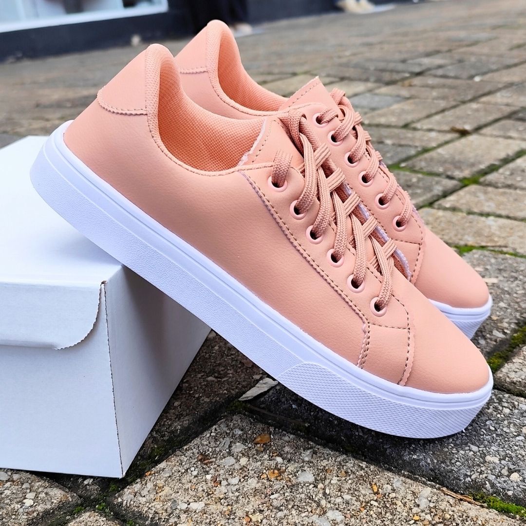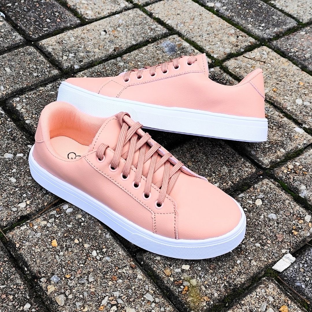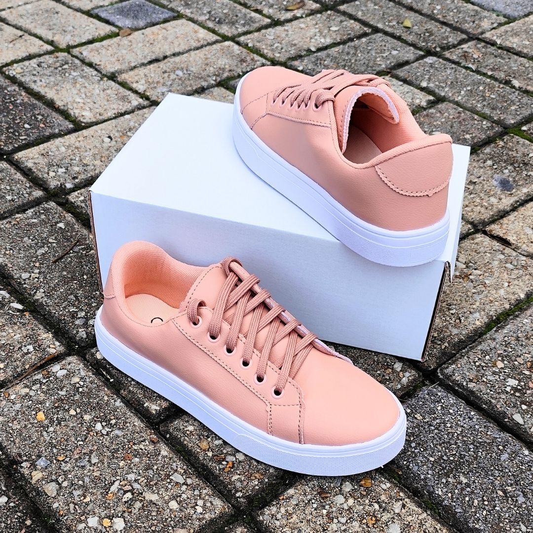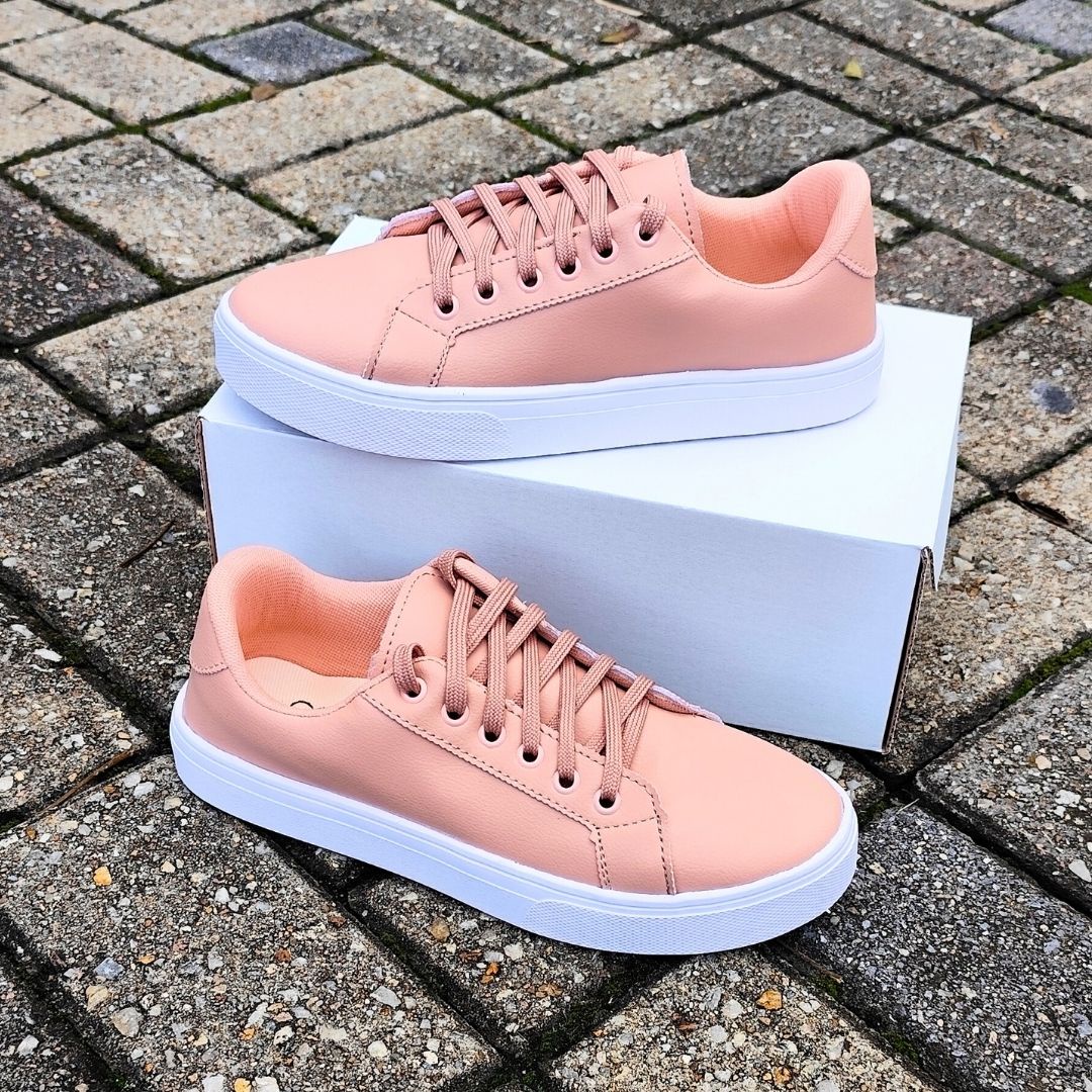 Com a cor salmão moderna e sofisticada, este tênis feminino é a escolha perfeita para quem busca estilo e conforto em um só calçado.
